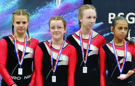 The 9-10 Novice Girls Team (Maya, Evie, Jess and Jess) bounced very well performing more difficult routines than in the last round, but missed out placing in the top three teams this year.